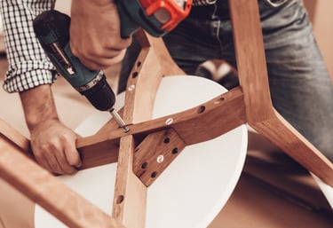 Noudamme tilauksesi, kokoamme huonekalut paikan päällä ja viemme pakkausjätteet pois.