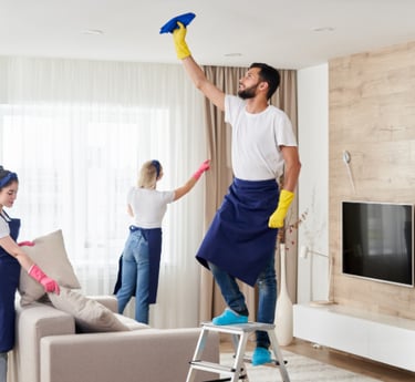 Siisti lopputulos: suojaamme tilat ja viemme roskat – jätämme puhdasta jälkeä.